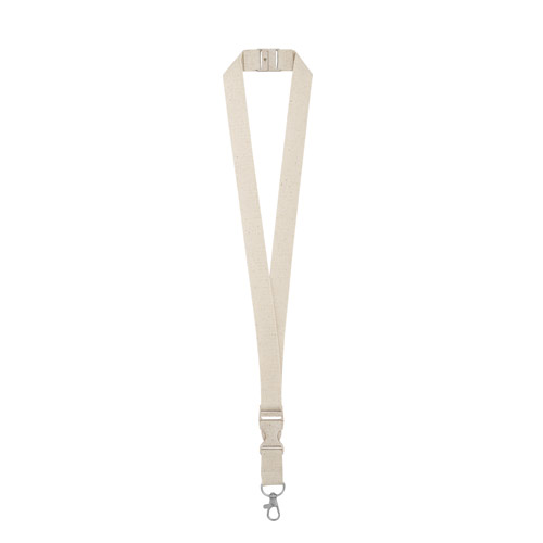 Tour de cou 100%coton avec mousqueton en métal. Boucle amovible et fermoir de sécurité en paille de blé