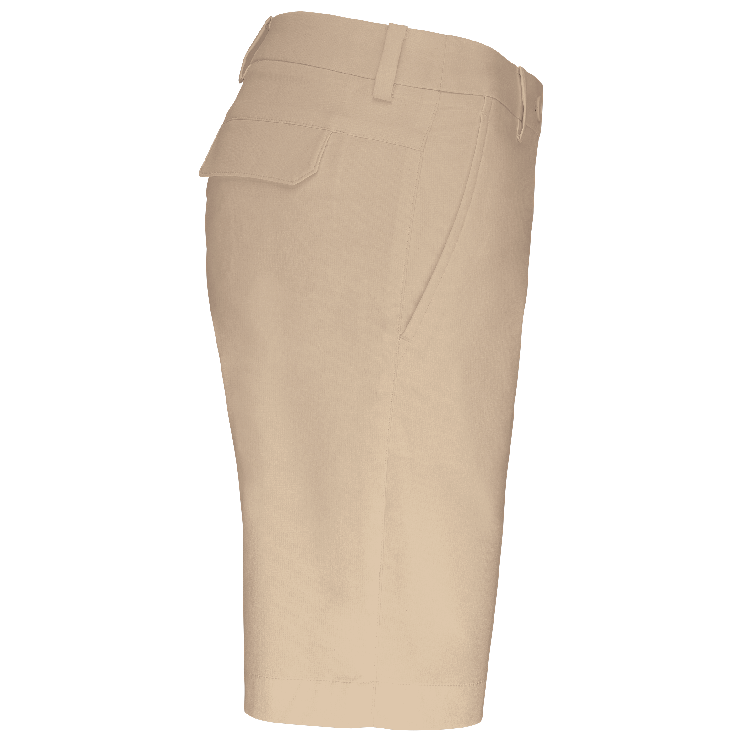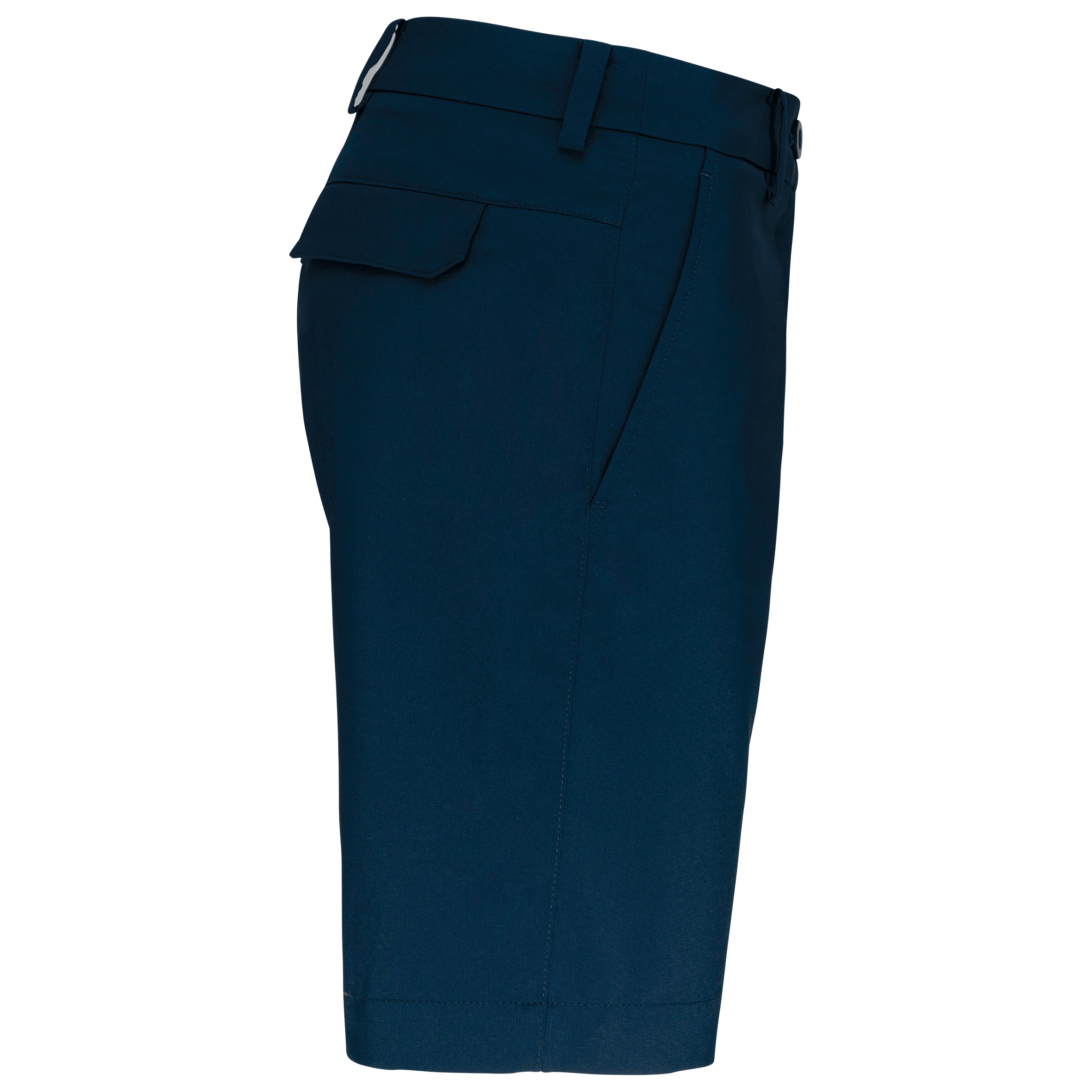 96% polyester / 4% élasthanne. Matière souple et déperlante pour un confort optimal. Coupe élégante et ajustée. Ceinture avec passants, 2 poches profondes côtés et 2 poches arrière passepoilées avec rabat.