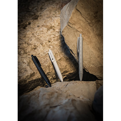 Stylo en carbonate de calcium (45%) et PP (55%). Ecriture noire. En raison de la nature de la matière des variations de couleur peuvent se produire