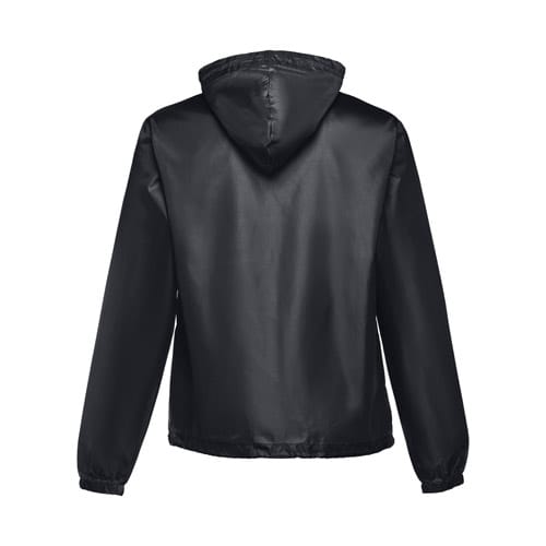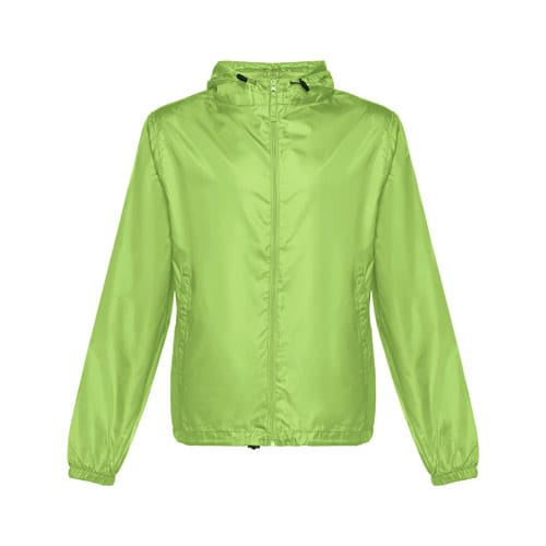 Coupe-vent pour enfant (unisexe) en taffetas 100% polyester (65 g/m²). Contient une capuche avec des bouchons de serrage et une doublure en filet. Élastique de serrage avec bouchons à la taille de la pièce et poches latérales avec fermeture éclair en plastique. Tailles: 6, 8, 10, 12, 14