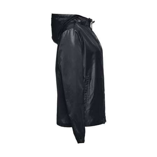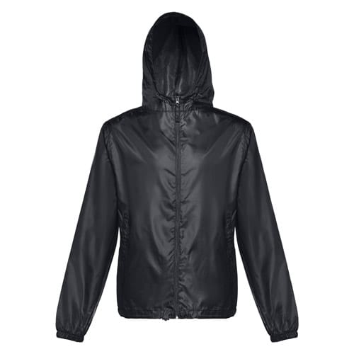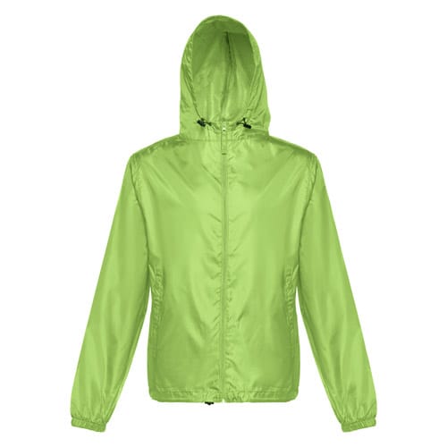 Coupe-vent pour enfant (unisexe) en taffetas 100% polyester (65 g/m²). Contient une capuche avec des bouchons de serrage et une doublure en filet. Élastique de serrage avec bouchons à la taille de la pièce et poches latérales avec fermeture éclair en plastique