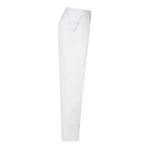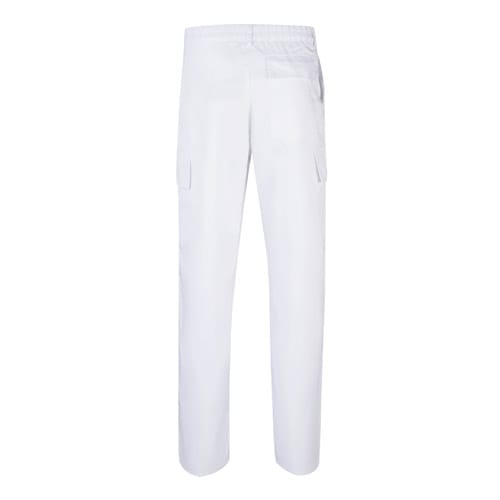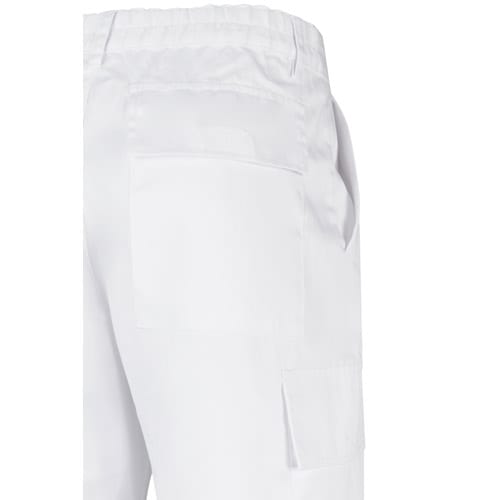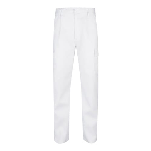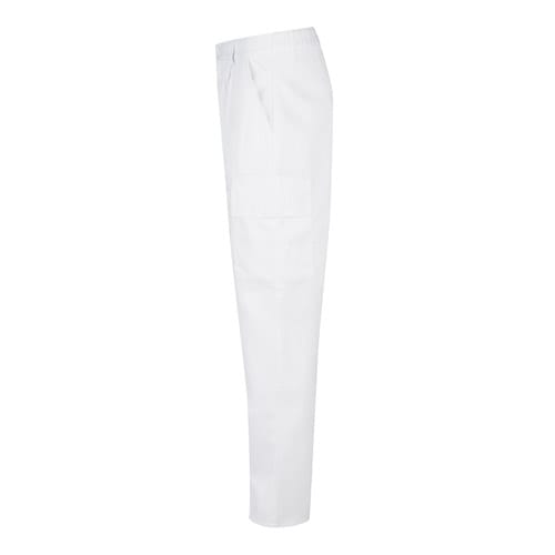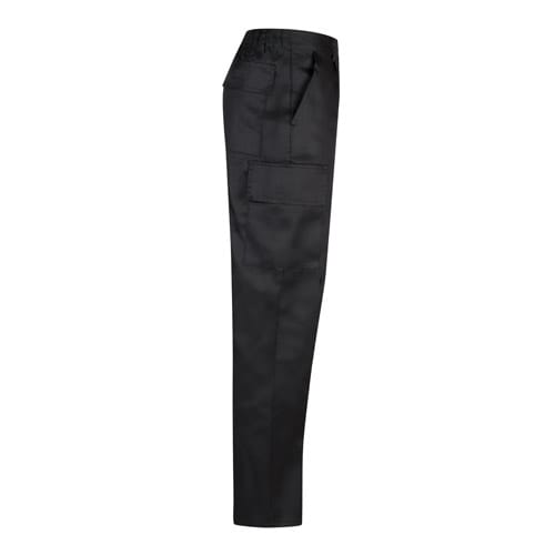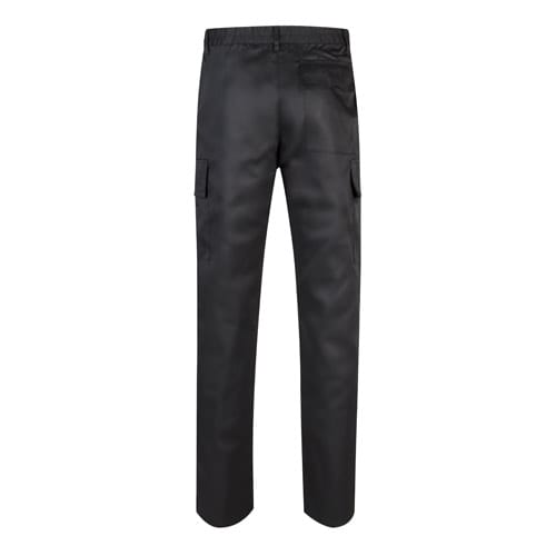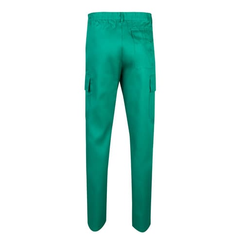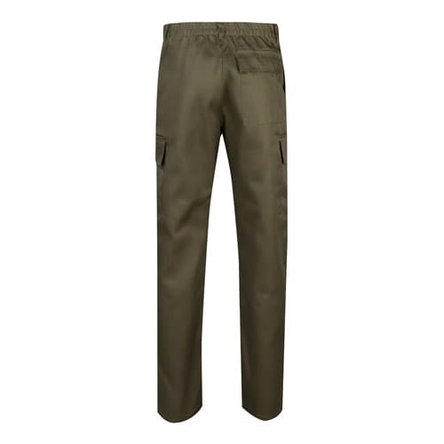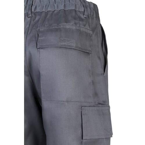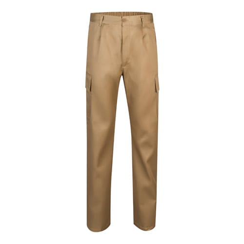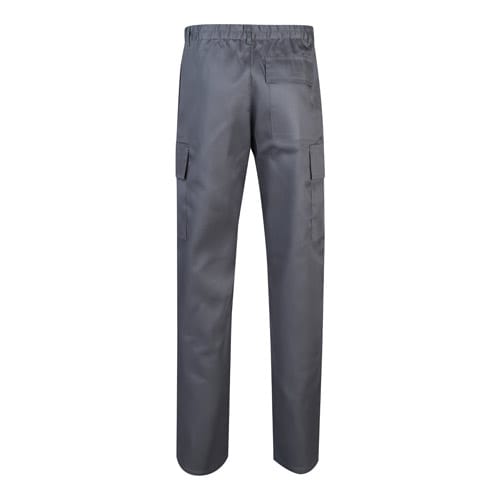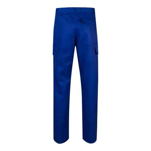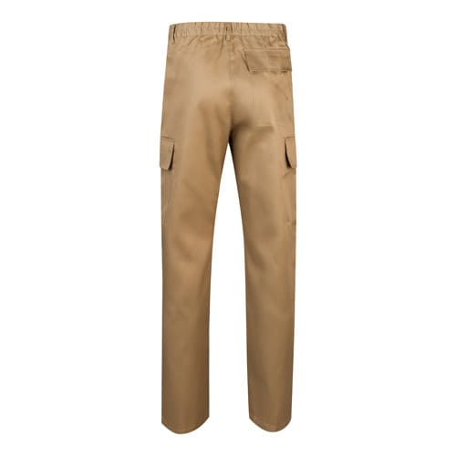 Pantalon multipoches en sergé (190g/m²), en coton (20%) et polyester (80%). Avec ceinture élastiquée et cinq poches (2 poches françaises, 2 poches à soufflet latérales et 2 poches à soufflet arrière). Taille: 36, 38, 40, 42, 44, 46, 48, 50, 52, 54, 56, 58, 60