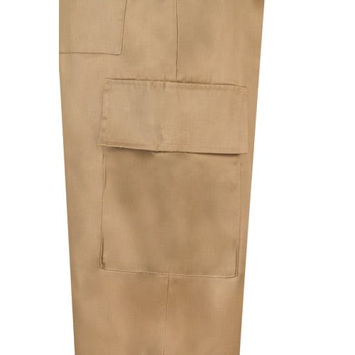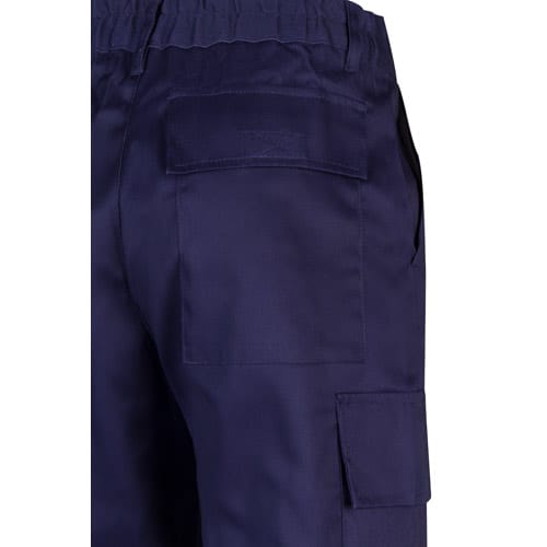 Pantalon multipoches en sergé (190g/m²), en coton (20%) et polyester (80%). Avec ceinture élastiquée et cinq poches (2 poches françaises, 2 poches à soufflet latérales et 2 poches à soufflet arrière)